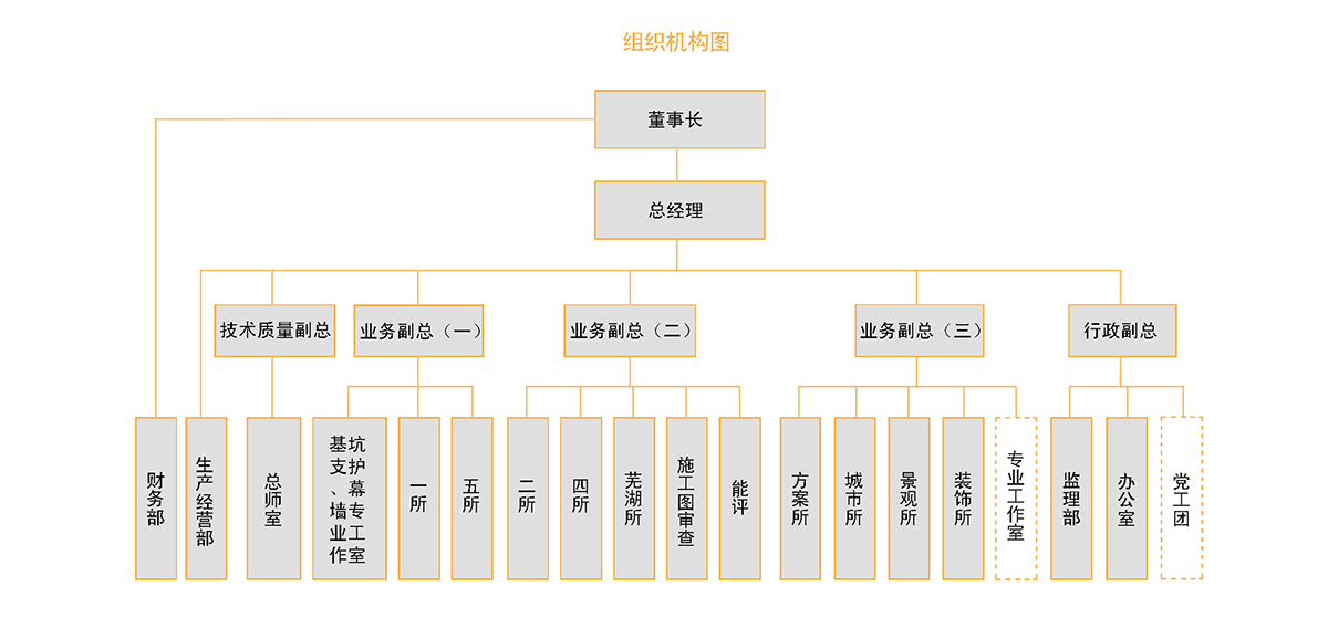 公司拥有国家住房与城乡建设部颁发的建筑工程甲级设计资质规划编制、岩土工程设计、市政专业设计、风景园林专项设计、施工图审查、工程监理等多项资质。目前现有四个综合设计所,六个专业设计所,业务范围涵盖工业与民用建筑工程设计、规划设计、市政设计、基坑支护设计、景观设计、室内外装饰设计、工程咨询、施工图审查、节能评估、工程监理等。